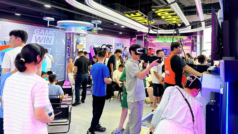 其中,二樓打造的“動(dòng)感競(jìng)技場(chǎng)”,可讓消費(fèi)者體驗(yàn)保齡球精準(zhǔn)碰撞的樂(lè)趣,在“槍王對(duì)決”和“實(shí)彈射擊”中感受腎上腺素飆升,挑戰(zhàn)“滑索”的速度與“射箭”的專注,暢玩Switch2/PS5主機(jī)游戲,或在“炫動(dòng)單車”“金剛戰(zhàn)士”“巔峰狙擊”中釋放活力,更可在“落日休憩區(qū)”憑欄觀海,動(dòng)靜皆宜;三樓打造了“科技社交匯”,讓消費(fèi)者步入VR館即可開(kāi)啟奇幻冒險(xiǎn),通過(guò)“宇宙一號(hào)”“傘途”“雙人360”“樂(lè)享滑雪”等7大尖端設(shè)備穿梭虛實(shí)之境。同時(shí),“聲控派對(duì)”“開(kāi)放式舞臺(tái)”點(diǎn)燃社交熱情,桌游、麻將、碰碰車、臺(tái)球、飛鏢、模擬網(wǎng)球、“悅動(dòng)格子”“360°單車”等豐富選擇滿足不同興趣群體,更有私密“轟趴房”和舒適“太空艙”提供專屬聚會(huì)與休憩空間。